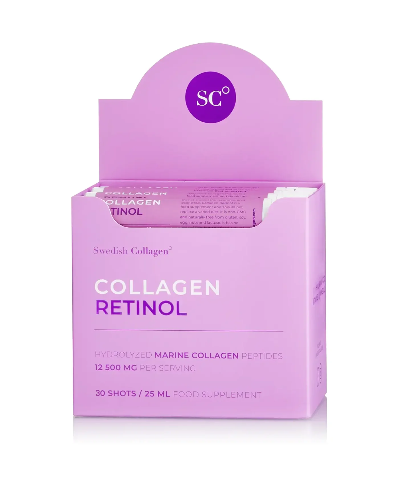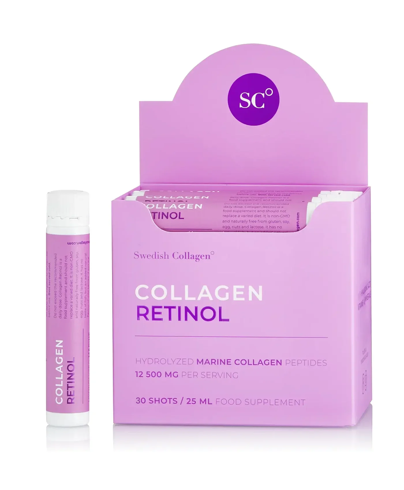 Complex super-concentrat pe baza de Colagen Hidrolizat Tip 1 si 3 Marin (Din Peste) cu cea mai mare concentratie de pe piata - 12.500 mg la Doza Zilnica. Formula unica este imbogatita cu Retinol 800 mcg, Acid Hialuronic 75 mg, Biotina 500 mcg, MSM 125 mg, Siliciu, Zinc si Vitaminele C, B5, B6, B12, D3. Cutia cu 30 Fiole Buvabile ajunge pentru 30 zile de administrare. Aroma si culoarea 100% naturala.