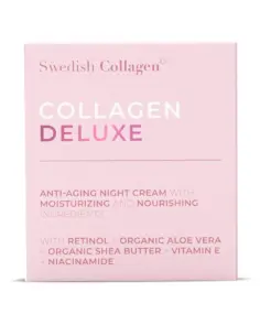 Crema faciala de noapte din gama Colagen Deluxe este un complex activ cu efect anti-imbatranire care reduce aspectul ridurilor si aparitia petelor pigmentare, hidrateaza in profunzime epiderma si reda stalucirea naturala a tenului. Crema are o textura bogata si matasoasa, care se absoarbe rapid in piele, lasand o senzatie placuta de confort.