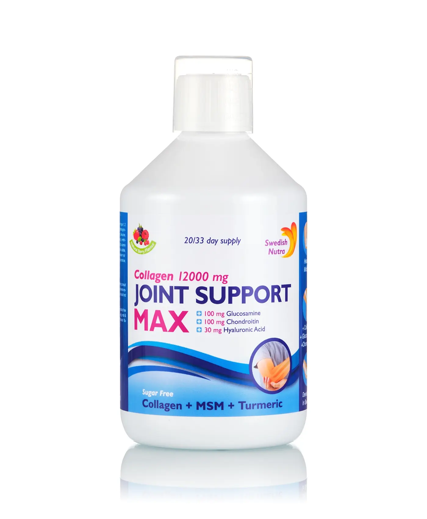 Joint Support Max este cel mai nou produs de Colagen pentru Articulatii din gama Swedish Nutra, cu cea mai mare concentratie de Colagen existent pe piata la ora actuala, 12.000 mg. Are in compozitie 3 tipuri de Colagen, Tip 1 , 2 si 3. Fiind o formula avansata, Joint MAX poate fii folosit cu succes si pentru toate tipurile de dureri articulare dar si pentru afectiunile articulare de grad avansat: artrita, artroza, gonartroza, cartilagii, ligamente, tendoane si alte tipuri de dureri: genunchi, cot, spate, gat, etc. Este eficient si la refacerea mobilitatii. Contine o formula imbogatita cu Acid Hialuronic molecular, MSM, Glucozamina, Condroitina, Turmeric, Vitamina C, Vitamina D si Seleniu.