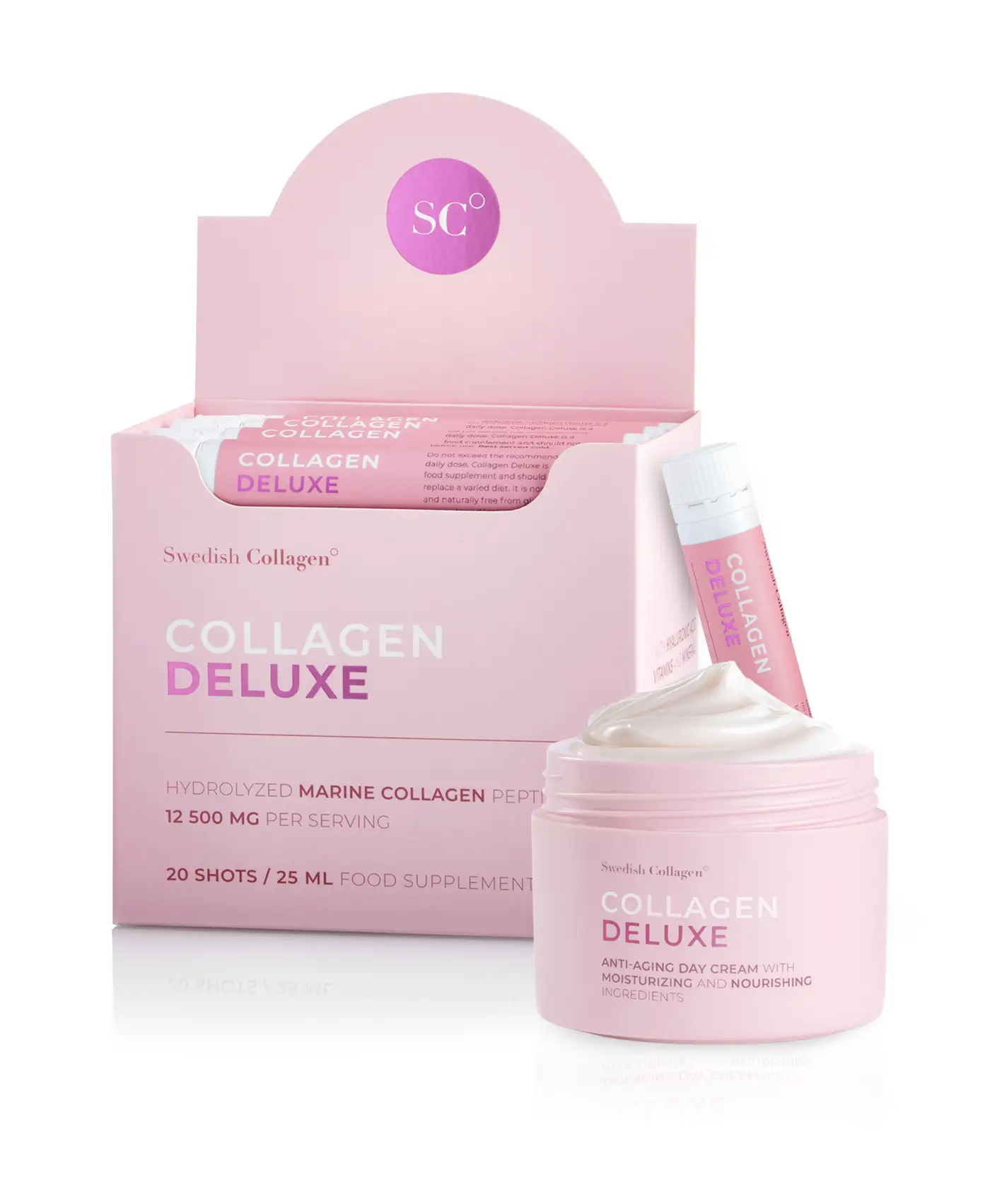 Setul Radiance Duo include 20 de fiole de Colagen Deluxe pentru rejuvenarea intensivă a pielii și o Cremă de Zi Deluxe cu Retinol pentru hidratarea si intinerirea tenului. Această combinație puternică este ideală pentru cei care doresc să sporească elasticitatea pielii și să obțină un ten strălucitor cu mai putine imperfectiuni. Îmbunătățește-ți rutina de îngrijire a pielii cu acest duo luxos!